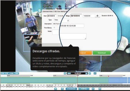 Desplácese rápidamente por las grabaciones y exporte imágenes de vídeo sin problemas utilizando una URL encriptada o un archivo de descarga seguro.
