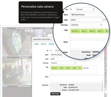 Cada cámara conectada al Eagle Eye Bridge se puede configurar para satisfacer las necesidades de grabación personalizadas.
