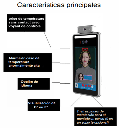 - Detección de la temperatura corporal en tiempo real y alarma por alta temperatura.