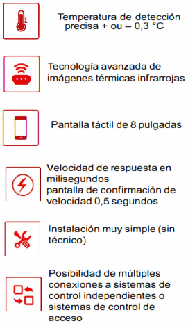 - Detección rápida de los síntomas de fiebre del Coronavirus, el SARS, el Zika, el Ébola y otras enfermedades.